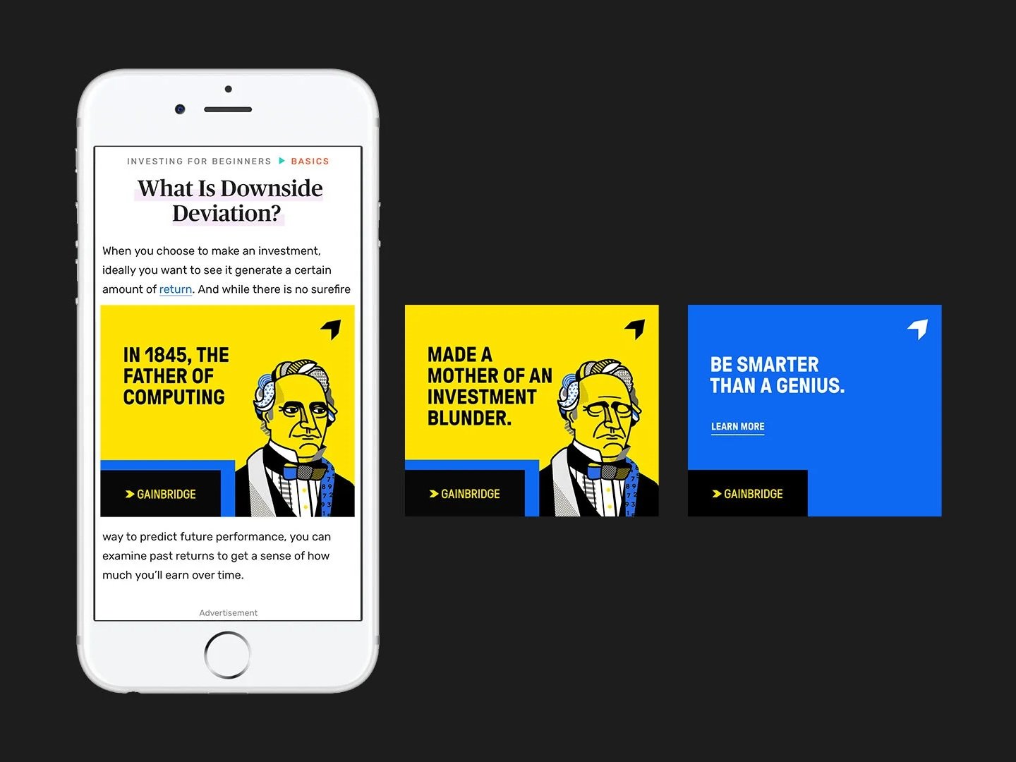 We created a campaign featuring history's smartest people and their spectacular market failures — positioning Gainbridge's guaranteed returns as the smarter bet.